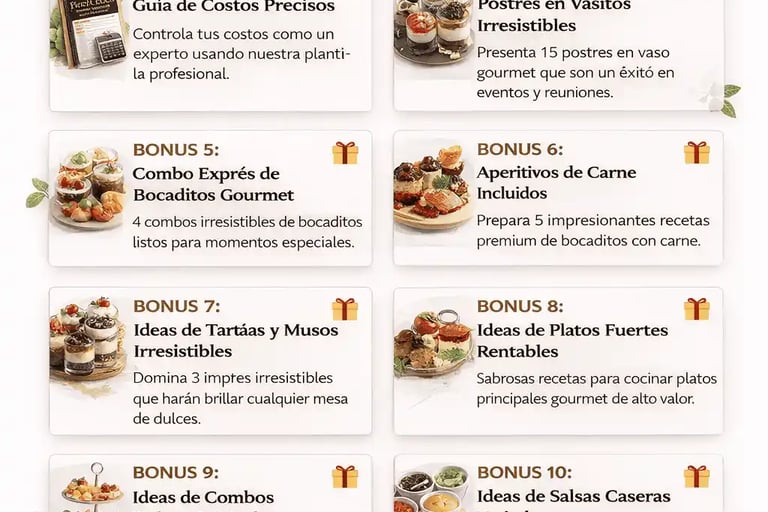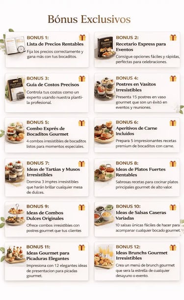 💡 Resultado: pasarás de cero a preparar, presentar y vender bocaditos gourmet con nivel profesional.
